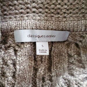 Classiques Entier Cable Knit Sweater Vest S Mushroom Brown Gray Bib Shawl Collar