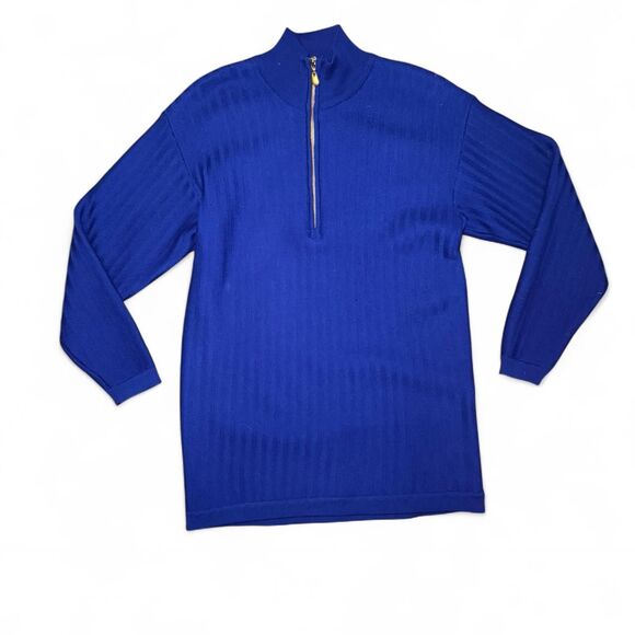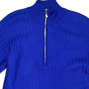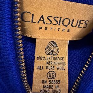 Classiques Petites XS Blue Half Zip Tunic Sweater 100% Extrafine Merino Wool Rib Knit Made in Hong Kong