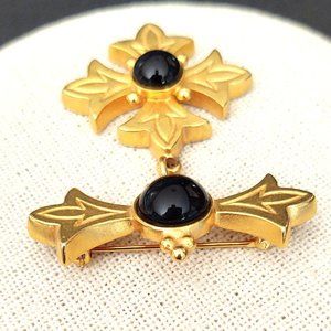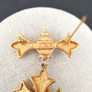 worn a few times. Noted flaws-center O links have some color worn off. Very minor marks on brooch. Otherwise, good condition.