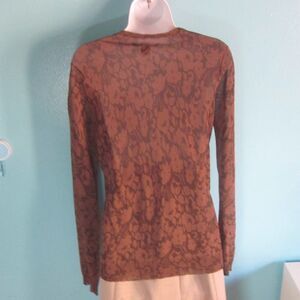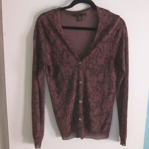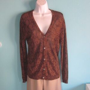 Classiques Entier Vintage Sz M Brown Floral Fitted Knit Button Cardigan Sweater