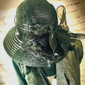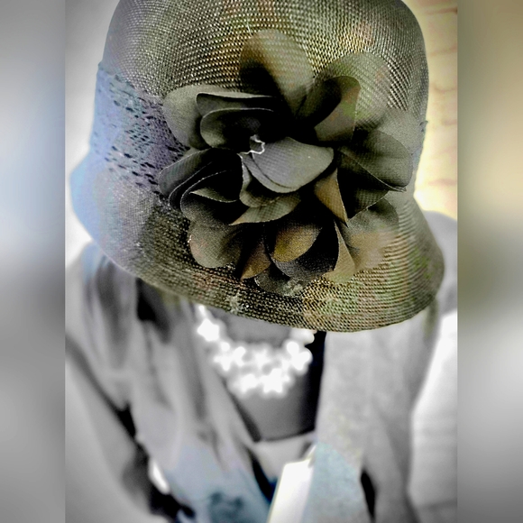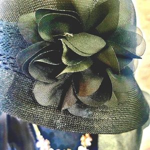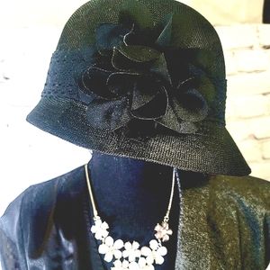 🖤 Classic and beautiful never worn black hat with Delicate flower Place in just the right spot to make you look smart.