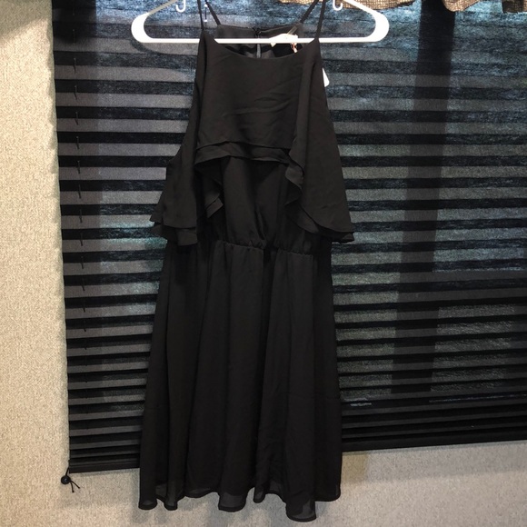 Bought from an online boutique and never worn. Classy, black, above the knee, polyester dress.