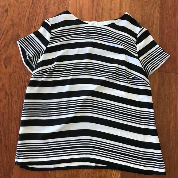 Black and white striped, short sleeved top. This top is the perfect compliment to your pajama bottoms for all your zoom calls! Brand new, never worn.