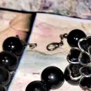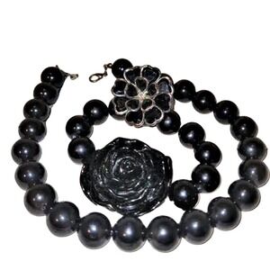 Classy Bold Black Flower Power Necklace Bracelet & Earring Set Lot