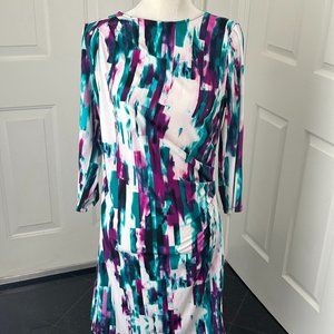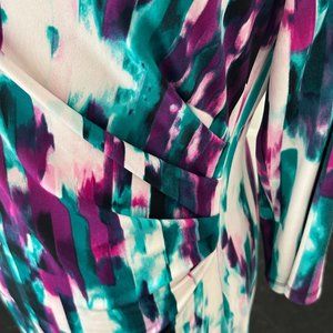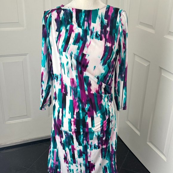 Classy Calvin Klein Women's 3/4 Sleeve Ruched Abstract Print Dress Sz M