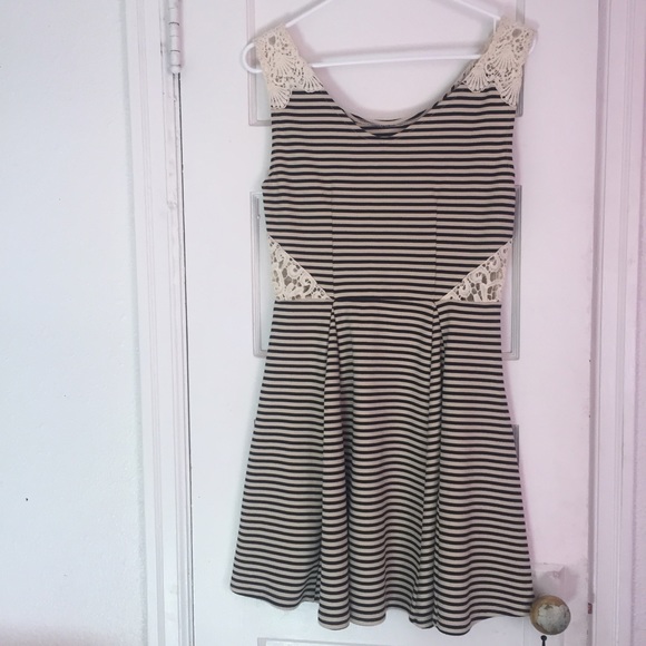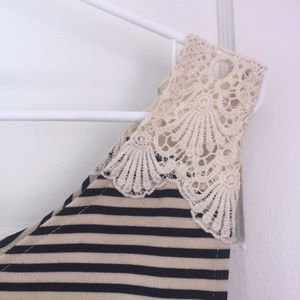 Black & White- stripes- lace strap- lace cutout- heavier material- great condition