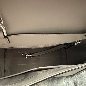 Brand new no tags Michael Kors trapeze bag in light gray with dark gray trimming. Comes with a removable strap and dust bag. Smoke and animal-free home.