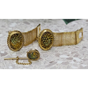 Classy Mid Century Vintage Cuff Link & Tie Pin Textured Honeycombs