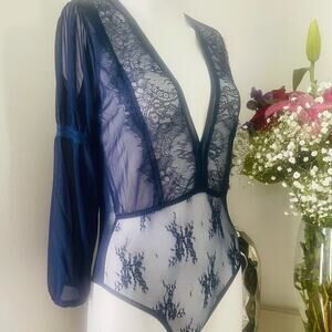Classy Navy Blue Lace Bodysuit Teddy SZ L NWT B156