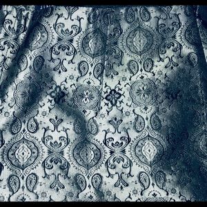 Have to rePosh because they don’t fit! These slacks are beautiful if you are a size 4 and want to look like a million bucks buy these pants you won’t be disappointed. Color is grey and black with a bit of a sheen.