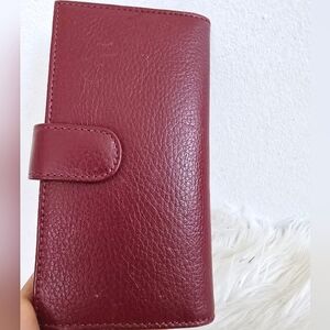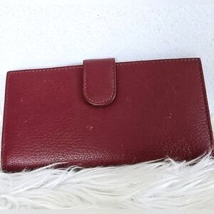 Classy Red Genuine Leather Wallet Height 4" Length 7" Width 0.75" Great preowned Condition.