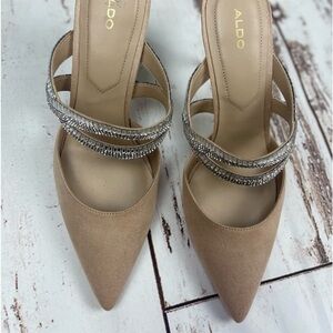 Classy Rhinestone Strap Suede Heel Pointed Toe Mules Aldo Noawia