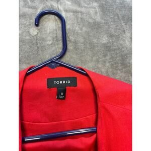 Classy TORRID Long Red Blazer Jacket Studio Crepe Longline Size 0 16
