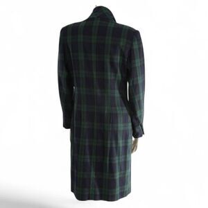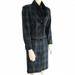 Classy Vintage Green Plaid Button Down Long Sleeve Blazer Dress W/ Velvet Collar and pocket trim. Size 10 PETITE.