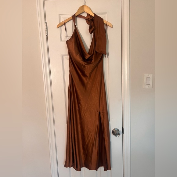 Classy, backless, halter satin dress with slit. 🔥