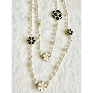 Classy number five Pearl flower statement necklace
