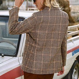Classy plaid button down Overcoat Jacket Shacket Coat brown