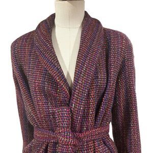 Claude Barthelemy Paris Vintage Tweed Boucle Tie Waist Jacket Coat