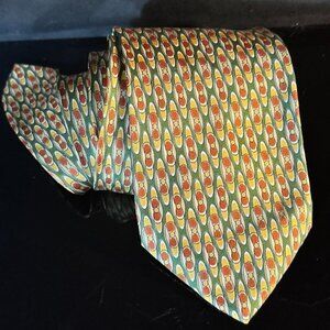 Thank you for looking at this Claude Montana Silk Tie Vintage Retro Mid Century Modern Orange Olive Green Bowling Pins