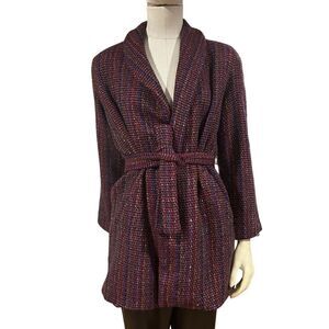 Claude Barthelemy Paris Vintage Tweed Boucle Tie Waist Jacket Coat