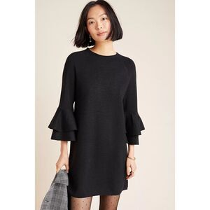 Claudette Ruffled Sweater Dress Anthropologie size 1x Black
