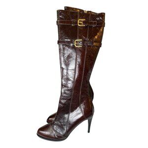 Claudia Ciuti Brown Leather Knee High Stiletto Boots Made in Italy 8.5 M NWOT