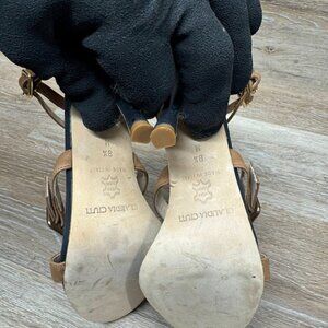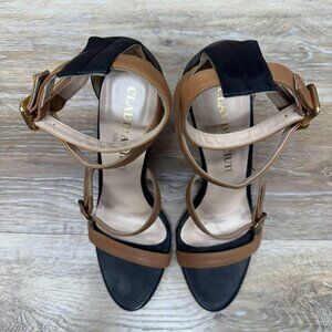 Claudia Ciuti Brown/Black Double Ankle Strap Pumps Women's Size 8.5