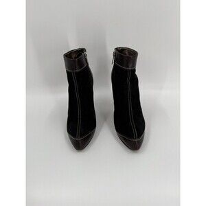 Claudia Ciuti Women's Mixed Leathers 4 inch Heeled Bootie Side Zip EUC