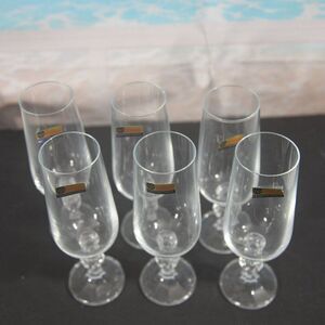Claudia Fine Lead Crystal Champagne Flutes Set of 6 Bohemia Czechoslovakia