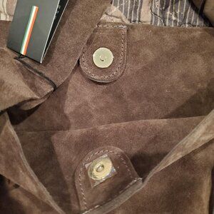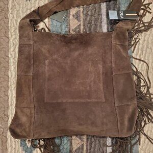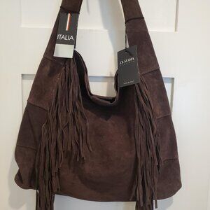 Claudia Firenze Emma Fringe Italian Calf Leather Suede Shoulder Bag Purse Brown