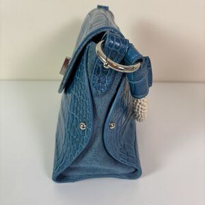 CLAUDIA FIRENZE TEAL LEATHER ALLIGATOR EMBOSSED SATCHEL SHOULDER CROSSBODY BAG