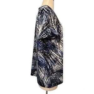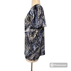 Claudia Richard Blouse Women's L Colorful Zip V-Neck Short Sleeve Shirt Top