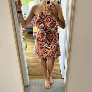 Claudie Pierlot Rumba One Shoulder Ruffled Belted Floral Mini Dress in Orange