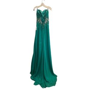 Claudine For Alyce Designs NEW Kelly Green Maxi Gown Prom Silky Chiffon Dress XS