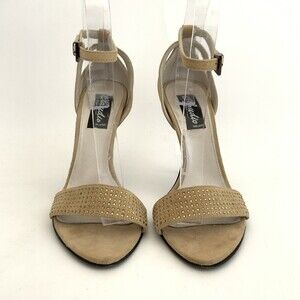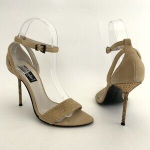 Claudio Sandals 7M Tan Jeweled Stiletto Ankle Strap Heels