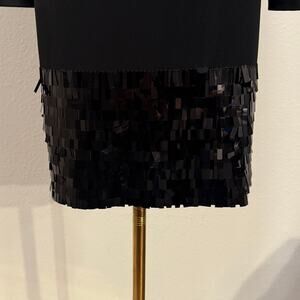 Clavin Klein Black Long Sleeve Midi Dress Sequin Hem 14 Cocktail Elegant Sexy