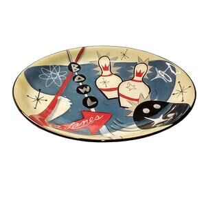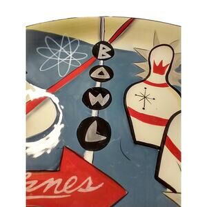 Serve in style with this vibrant and collectible Clay Art Bowl O Rama serving bowl! Featuring a playful retro bowling alley theme, this hand-painted StoneLite stoneware bowl is as functional as it is fun. Its impressive 17 1/2" diameter makes it perfect for serving pasta, salads, chips, or snacks at your next gathering.