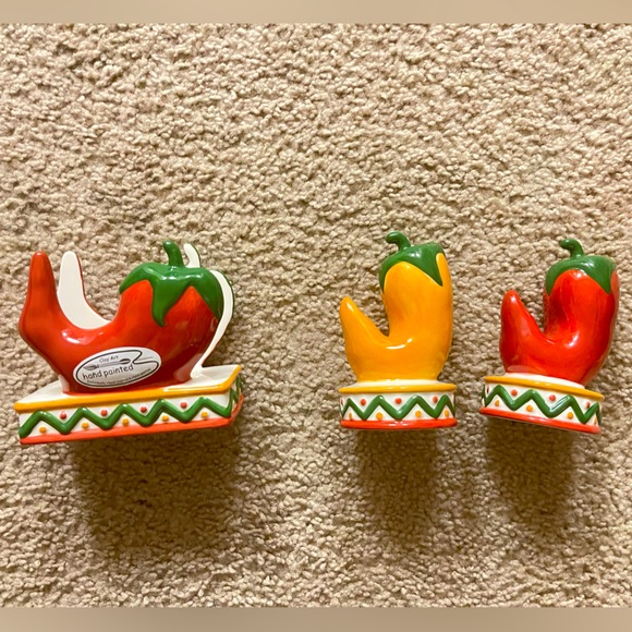 Clay Art Chili Hot Pepper Salt and Pepper Shaker and Napkin Holder Set