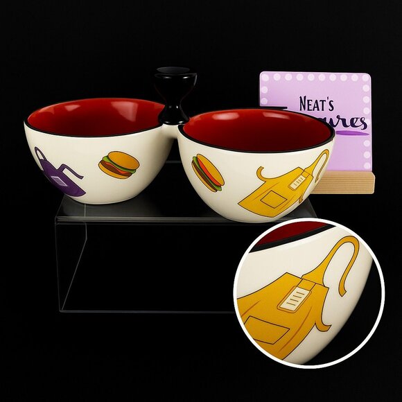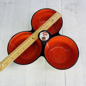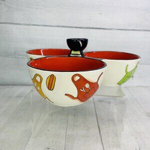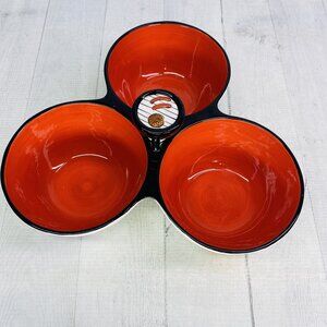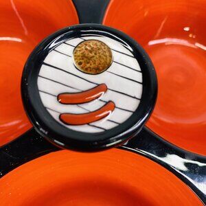 Clay Art GRILL TIME Hand Painted Summer Fun 3 Section Ceramic Condiment Server