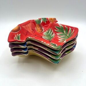 Clay Art Hawaiian Shirt Shaped Ceramic Trinket Dish Surfboard Pineapple Set of 4
