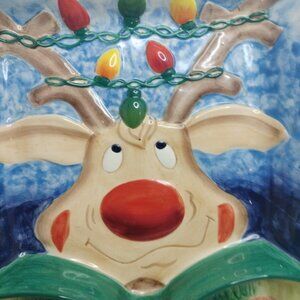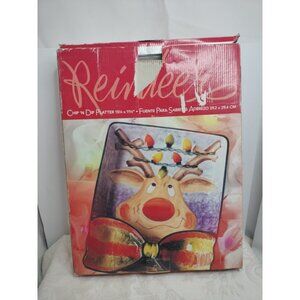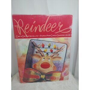Clay Art Reindeer Chip 'n Dip Platter Christmas Serving Tray Plate (B145)