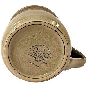 Large, heavy stoneware mugs. Matching set of 2. 4.50 inches tall, 6 inches wide including handle. Hold around 20 ounces.