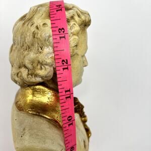 vintage clay plaster bust of Wolfgang Amadeus Mozart. Standing 14 inches tall, this beautifully crafted sculpture captures the iconic features of the classical composer, making it a distinguished addition to any collection.