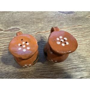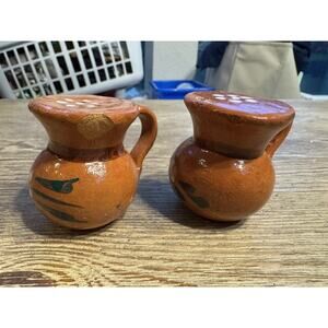 Clay Salt And Pepper Shakers Mexico Pottery. Hand Painted. Condition is Used.