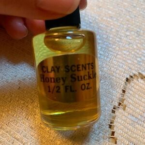 Clay Scents Honey Suckle oil in a small bottle. Perfect for adding a sweet fragrance.