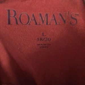 Roamans size large 18/20. Clay color. Comfy tee material. Pairs nice with or without a belt and leggings. Excellent condition.
