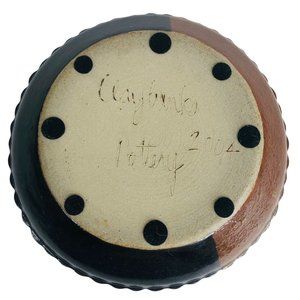 Claybanks Studio Art Pottery Pie Dish Plate Pan Brown Black Abstract Vintage
