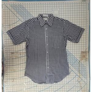 Claybrooke Dark Blue Checked Shirt Vintage Short Sleeve Button‑Up Casual Mens