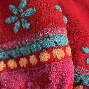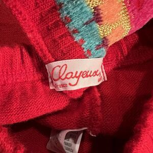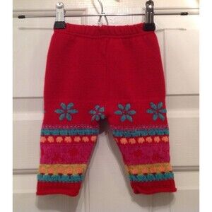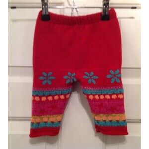 Clayeux Pants Infant Sz 6M Red Knit Acrylic Wool Bright Fair Isle Made In France