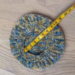 Made from a soft, cozy knit in a vibrant mix of blue, gold, and cream tones, this hat is perfect for keeping kids warm while looking stylish during the fall and winter seasons.